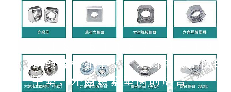 kep nut 鎖緊螺母 acorn nut 蓋形螺母 wing washer 翼型墊片 eye bolt 吊環螺栓(也叫環首螺栓, 其實這個叫法很多,大概是不同地區的緣故)Piston bolt 活塞螺釘 Winding bolt 線圈螺釘 Hexagon head bolts 六角頭螺栓 He